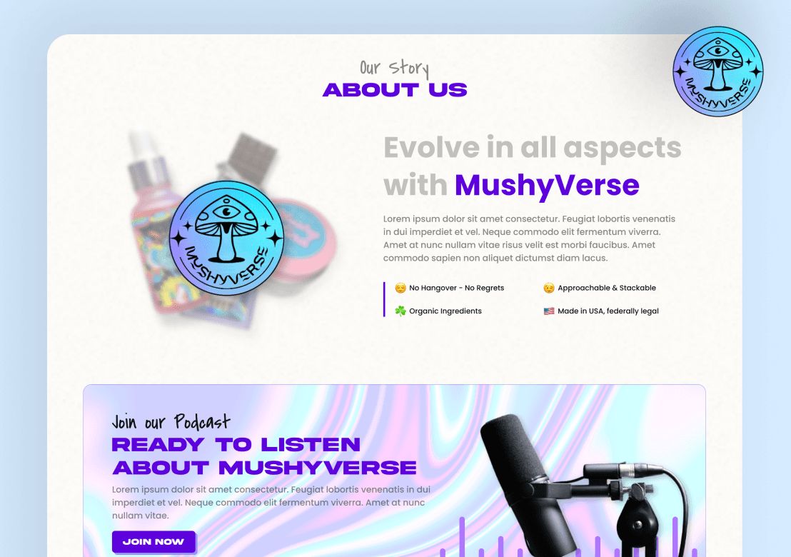 MushyVerse is an e-commerce platform dedicated to quirky, customizable lifestyle products for creative shoppers. The objective was to craft a vibrant, playful, and user-friendly website that reflects the brand’s whimsical identity while streamlining the shopping experience. Prioritizing bold visuals and smooth interactions, the site needed to captivate visitors and make discovery fun.